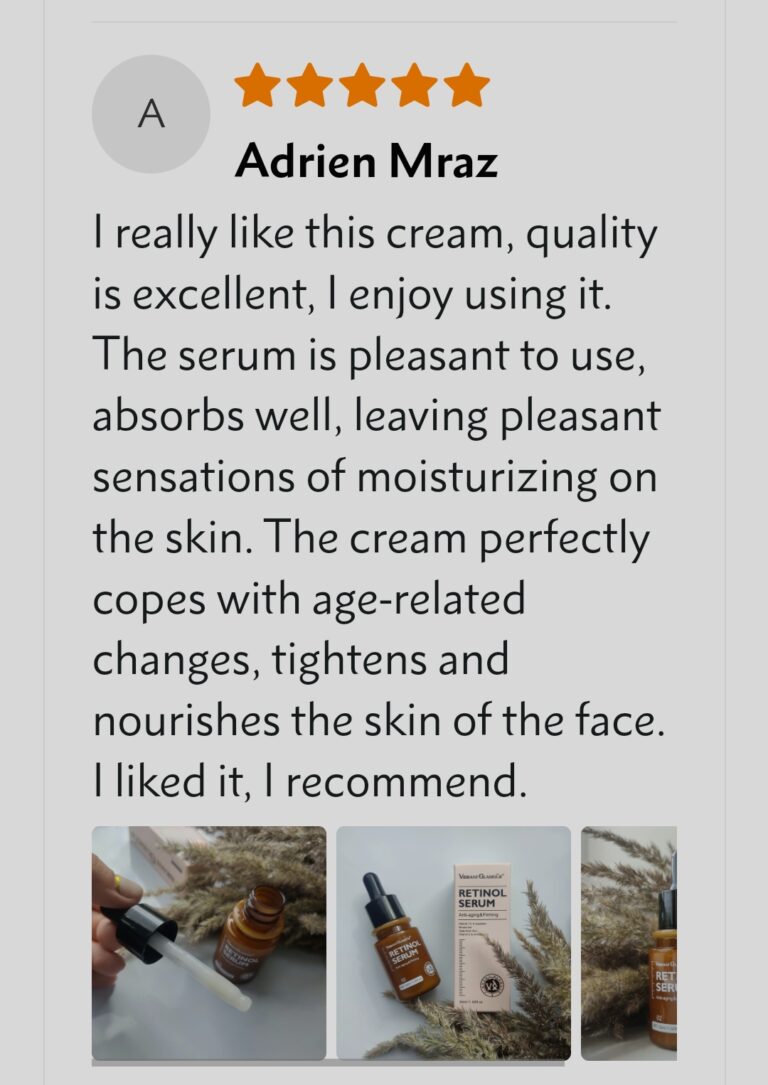 This Vibrant Glamour Retinol combo delivers the HIGHEST Concentration of Retinol (vitamin A) deep into your skin’s surface quickly and effectively, to help diminish fine Lines, wrinkles, and premature aging due to sun exposure, supports natural collagen production and faster cell turnover, for visibly smoother and younger-looking skin in no time.
